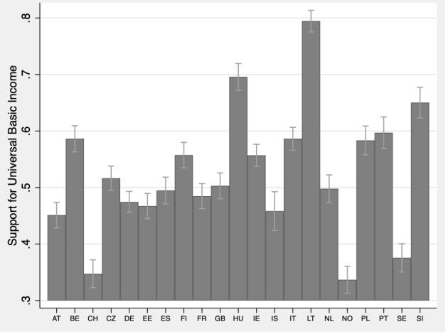 Support for the Universal Basic Income across countries