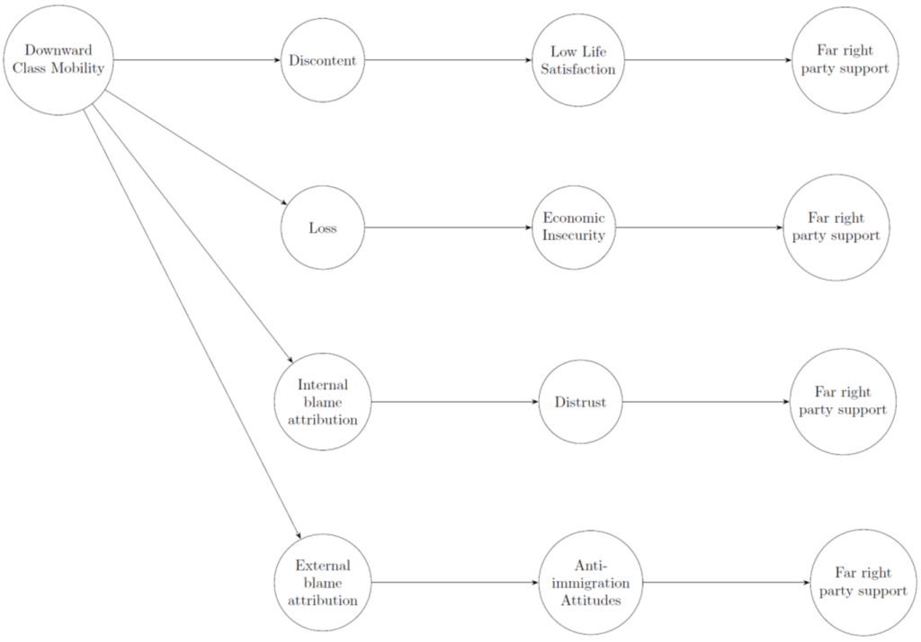 Figure 1: The four reasons why downward class mobility leads to far-right voting